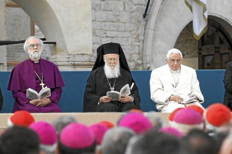 From left to right: The Most. Rev. Rowan Williams, Archbishop of Canterbury, His All-Holiness Bartholomew, Orthodox Ecumenical Patriarch and His Holiness Pope Benedict XVI.